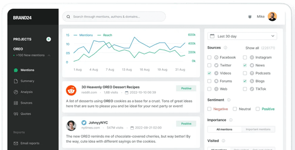 Key Features: More than 1 billion sources, instant alerts, and detailed reports.